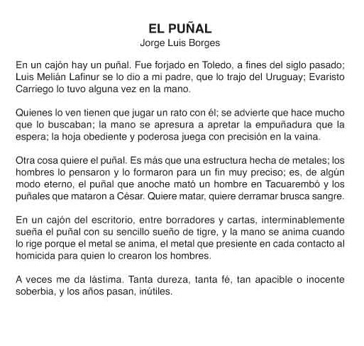 El puñal. Yo versioné a Borges sin respeto